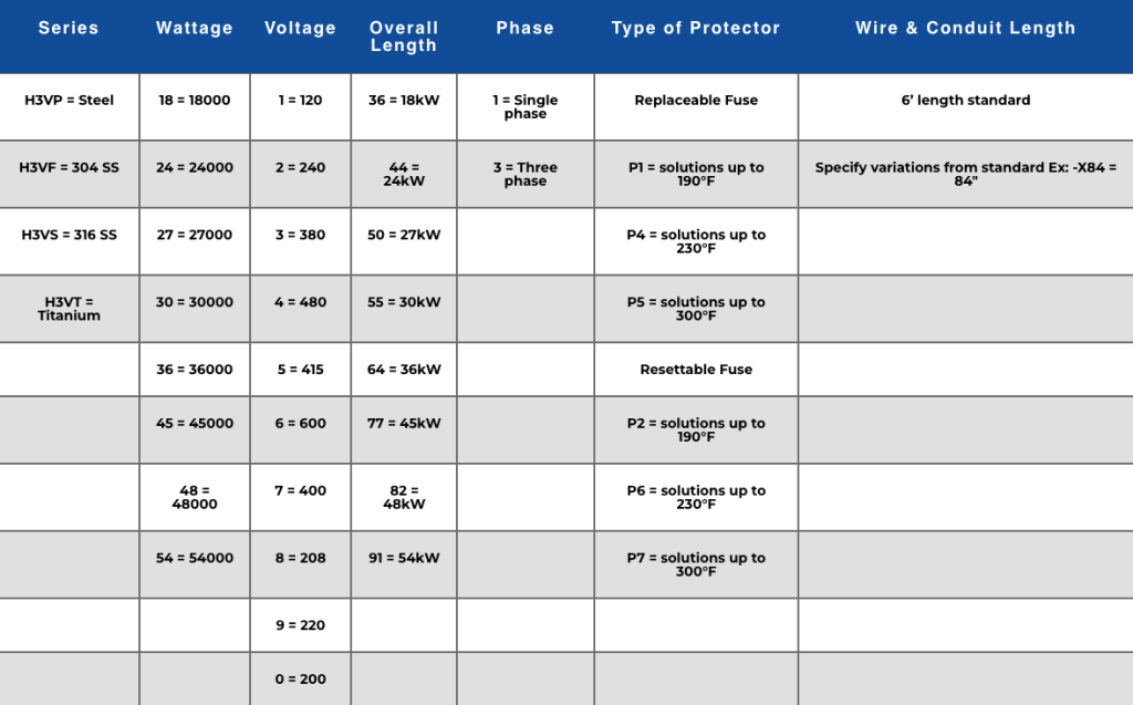 H3V Three Element Metal Deep Tank Heater Specs 1