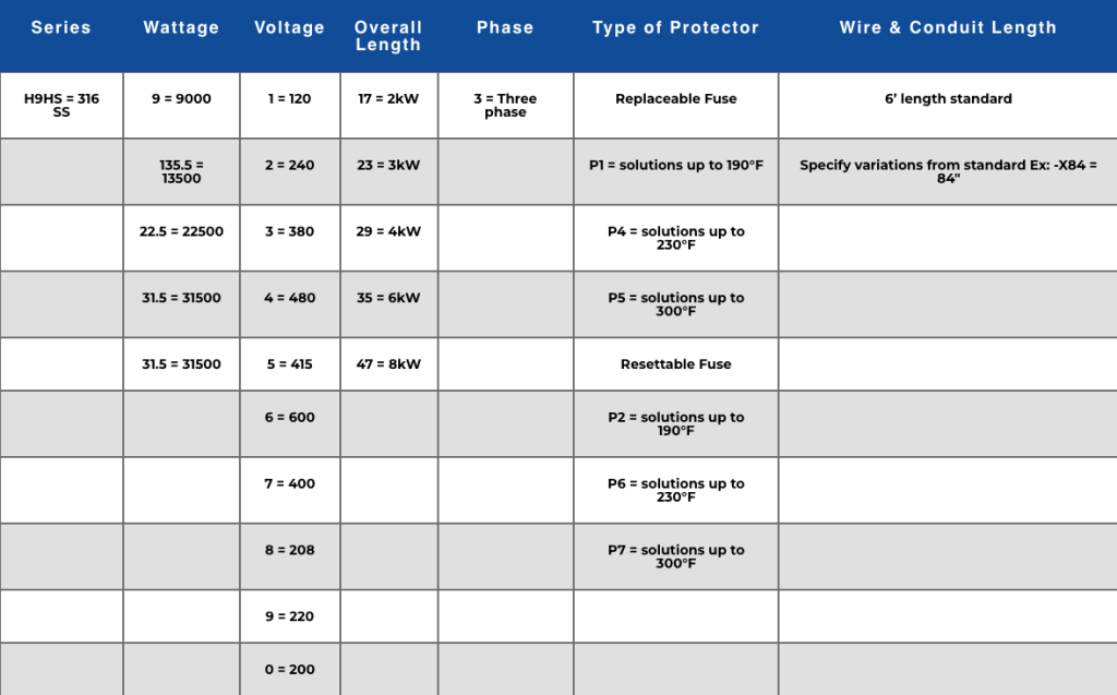 H9HS Nine Element 316 Stainless Steel Heater Specs 1