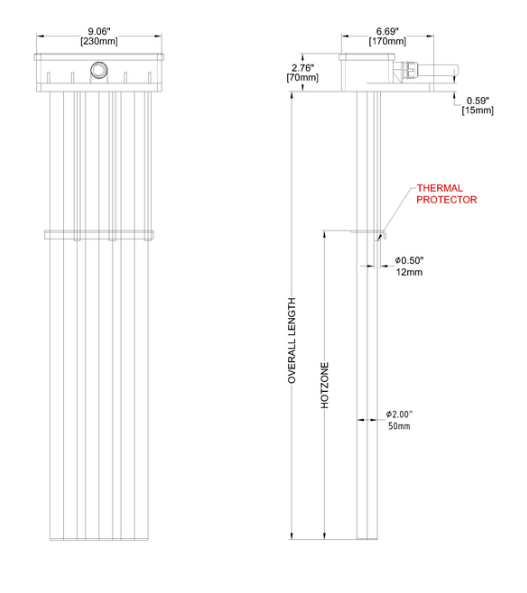 • Standard watt density: 35 w/in² (5 w/cm²)