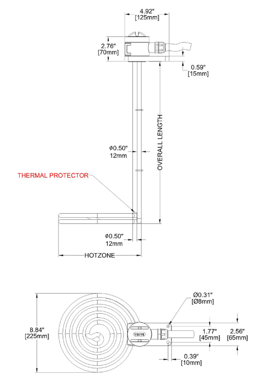 HZFL Low Profile L-Shaped PTFE Heater Specs 2